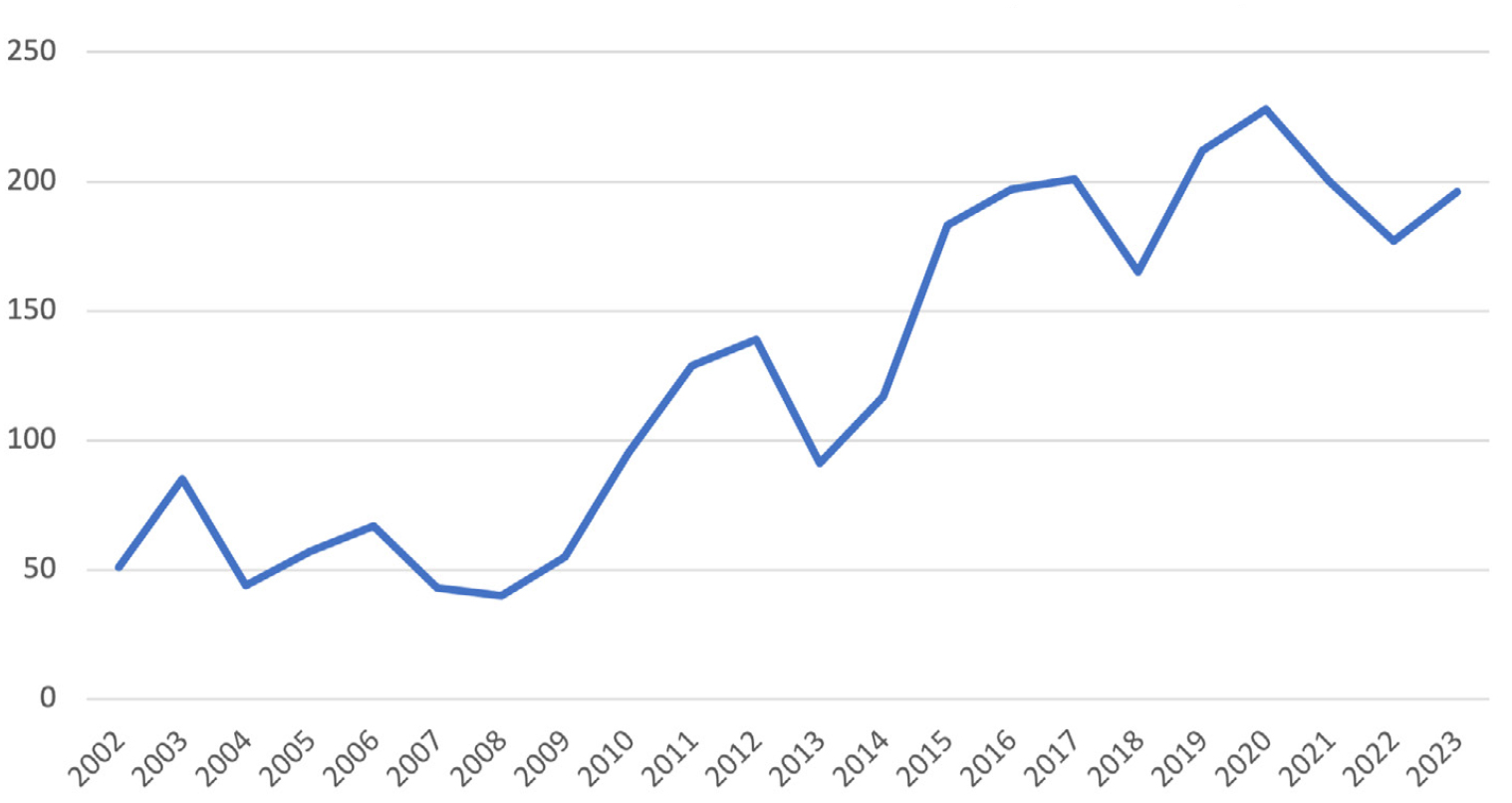 Figura 1. Defensores ambientales asesinados (2002-2023)